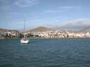 Our only other landfall in the Cape Verdes was to be Porto da Praia on Santiago the capital of the archipelago.  We had planned to visit elsewhere, but the wind had other ideas.  Our first contact there was a Frenchman with only one visible tooth (there just didn't seem to be enough teeth to go around in the Cape Verdes) and little English,  He had completed four Transat races and now lived aboard his catamaran and spent his life between the Cape Verdes and the Azores.  We never managed to understand his name, but we did understand that he thought this a totally unsuitable time to sail to Brazil (something about not enough wind).  Just a tad concerning as he seemed, in our minds, to be the living embodiment of Bernard Mortessier.  There was also a price for this confidence sapping advice - I lost my expensive prescription sunglasses over the side whilst helping him into his dinghy.