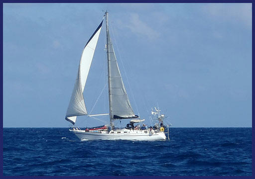Like Providencia though we did, it's a pretty small place and really a stepping stone on the way north, so after a couple of weeks - on 16th December it was time to move on again.  We hauled the anchor and in company with Balvenie and Passport (with IB and Rebecca on board) motored a couple of miles north to Long Cay which would give us a head start the next morning for the trip towards Guanaja in the Bay Islands.  A rolly squally trip, with lots of reefing, but at least it was all behind the beam.  On day two Balvenie and ourselves made the decision to make a pit stop in the Vivorillos to get a proper night's sleep and continue on early the following morning, whilst Passport continued on to Guanaja without stopping.  The Vivorillos and the Hobbies are two small clusters of islets and reefs 40 miles off the NE corner of the Honduran coast just where we turned west to head for the Bay Islands.  There's nothing at either of them, but they are said to have spectacular diving, snorkelling and fishing.  We wouldn't find out as the weather forecast meant that if we didn't move straight on we might be pinned down in strong winds for weeks.  So first thing the following morning we and Balvenie were off, this time in company with Jerry & Nola on the Alaskan boat Moonsong  who we'd met before in the San Blas and who had also been anchored at the Vivorillos.  This route is something of a cruising motorway.  By lunchtime tomorrow we'd be in Guanaja.