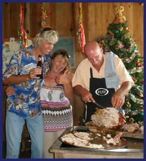 And a splendid spread it was  turkeys, hams, meat loaves, smoked Mahi Mahi (well it may not be traditional where you come from, but............), etc, etc.  It's a week of festivities spread over a couple of islands.  Lindy's Birthday on the 29th finds us in Frenchy's 44 in French Cay harbour, Roatan with Mark & Amanda and then it's New Year aboard Balvenie with Brenda & David of Bandit as well.