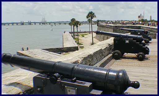On up the ICW.  We're required to report in to Customs each time we move, but even they haven't heard of some of the places we stop.  New Smyrna - "Where? Well tell me somewhere its near then."  "Actually, it's not near anywhere" I tell him.  He sighs "OK, spell it for me then".  Then Daytona Beach - Super tacky.  Palm Coast - great marina, lovely people, but again - not really anywhere, though we did get a lift to Publix.  And then St Augustine.  The oldest (continually occupied) European settlement in The USA.  A lot of things in the US claim to be oldest, biggest, etc followed by a list of sometimes pretty obscure qualifications.  Being old is particularly important it seems.  And St Augustine is pretty old (450 yrs) by US standards - though the oldest bits were actually built by the Spanish.  And it is also one of the best places to be for the 4th of July celebrations and we have arrived on the 3rd to take up our spot for the fireworks.