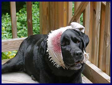 head swells until she resembles a canine version of Quasimodo so she's laced